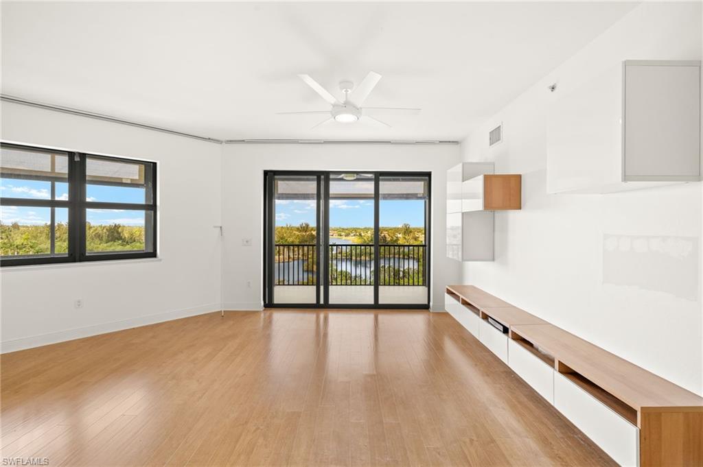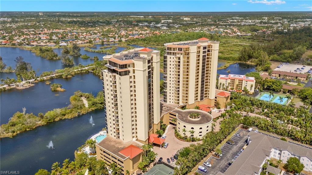 Don't miss this western exposed condo with nightly picturesque sunsets and lake views at the amenity rich Riva Del Lago. This 8th-floor condo offers three bedrooms and three bathrooms, serving as your gateway to resort-style living. Enjoy nightly sunsets over the stunning 300-acre Lakes Park from your private lanai. The thoughtfully designed open layout bathes in natural light, featuring new tile flooring throughout main rooms. The expansive master suite opens directly onto the large lanai with roll-down hurricane protection, creating a perfect private sanctuary with one of the most beautiful, tranquil views in Southwest Florida. Your guests will appreciate their own private retreat - a guest suite complete with en-suite bath and walk-in closet. Impact-resistant windows and doors throughout provide premium protection, and a new Samsung washer/dryer. Riva Del Lago enhances your lifestyle with resort amenities including: Expansive infinity-edge pool with relaxation areas, Two spas, Well-equipped fitness center, Tennis court , Kayak launch and storage, Bike storage, Billiards/media room, Library, & on-site management. The community's active social calendar creates endless opportunities to build friendships. What truly sets Riva apart is its private, gated access to Lakes Park, offering walking/biking trails, kayaking lakes, a weekly Farmer's Market, and natural beauty. Situated in prime south Fort Myers, you'll enjoy proximity to shopping, dining, entertainment, healthcare facilities, beaches, and the airport. This pet-friendly condo includes two deeded parking spots and a storage room in the under-building garage. This property has assessments paid to date. Property is being sold as-is.