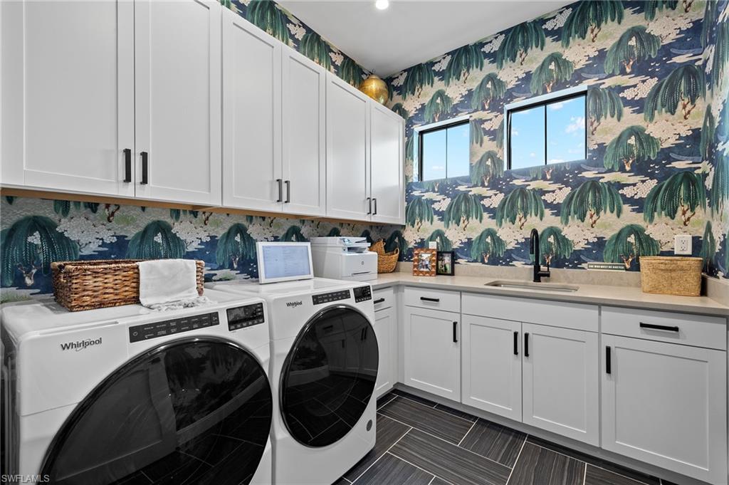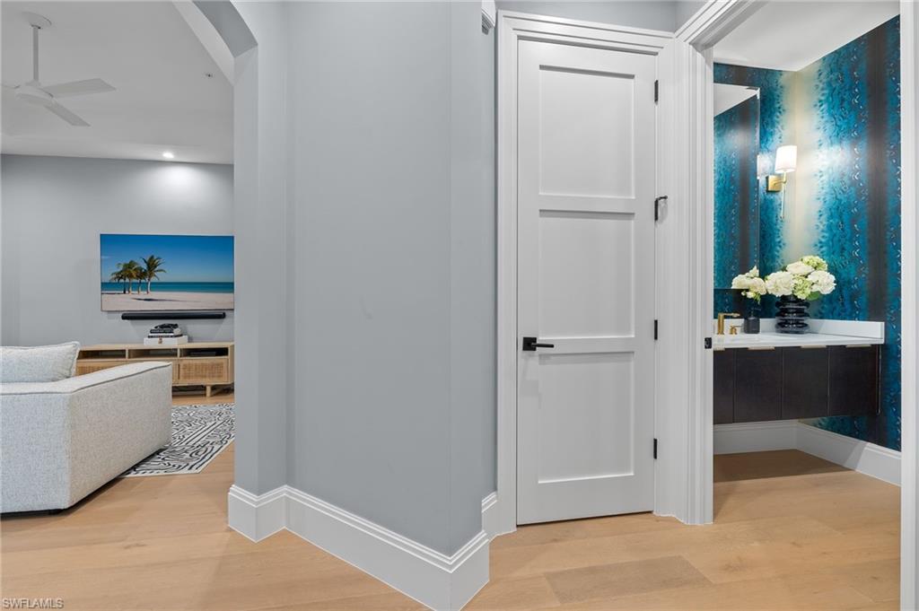 Beyond the beautiful aesthetic upgrades, the bedrooms and pantry are outfitted with custom closet systems, while the garage has a new epoxy floor and Encore built-ins creating optimal storage and functionality. Additional features include Storm Smart remote controlled hurricane roll-down shutters, ceiling-integrated surround sound both inside and out, a home alarm system, and generous additional parking for guests and entertaining.