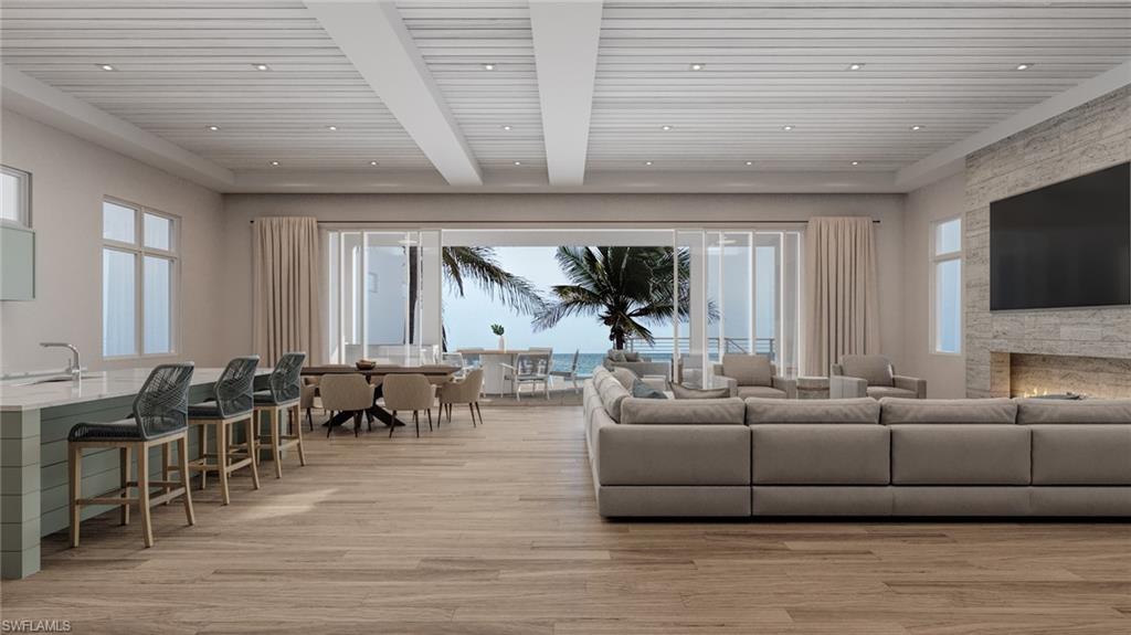 Refined meets relaxed to create the perfect beachfront respite for you and your family. Currently under construction, this Bonita Beach home is brought to you by an award-winning team: built by Potter Homes and interior design by Adelyn Charles; the home will be delivered with the most discerning buyer in mind. The ascent to the main living level reveals an expansive great room with panoramic views of the beach and gulf beyond. This space was designed with entertainment and relaxation in mind. The kitchen features an oversized center island with a state-of-the-art Thermador appliance package. Through the pocketed sliding glass doors is an outdoor living area where countless memories will be made, featuring an infinity edge heated pool with hot tub, outdoor kitchen and pool bath, gas fireplace, and finely appointed outdoor living area. The primary suite will become your private oasis; imagine being soothed to sleep by the soft sound of waves after a long day. This home features the latest smart home technology and is built to weather the storm. The home is centrally located to RSW and the Naples Airport; fine dining, shopping, and golf are minutes away. Expected delivery: Aug 2025.