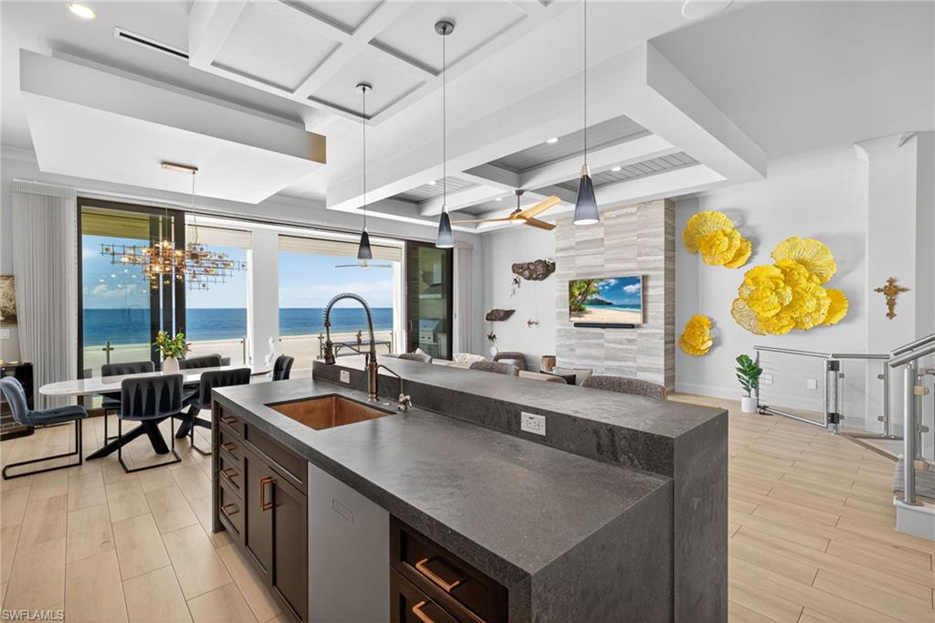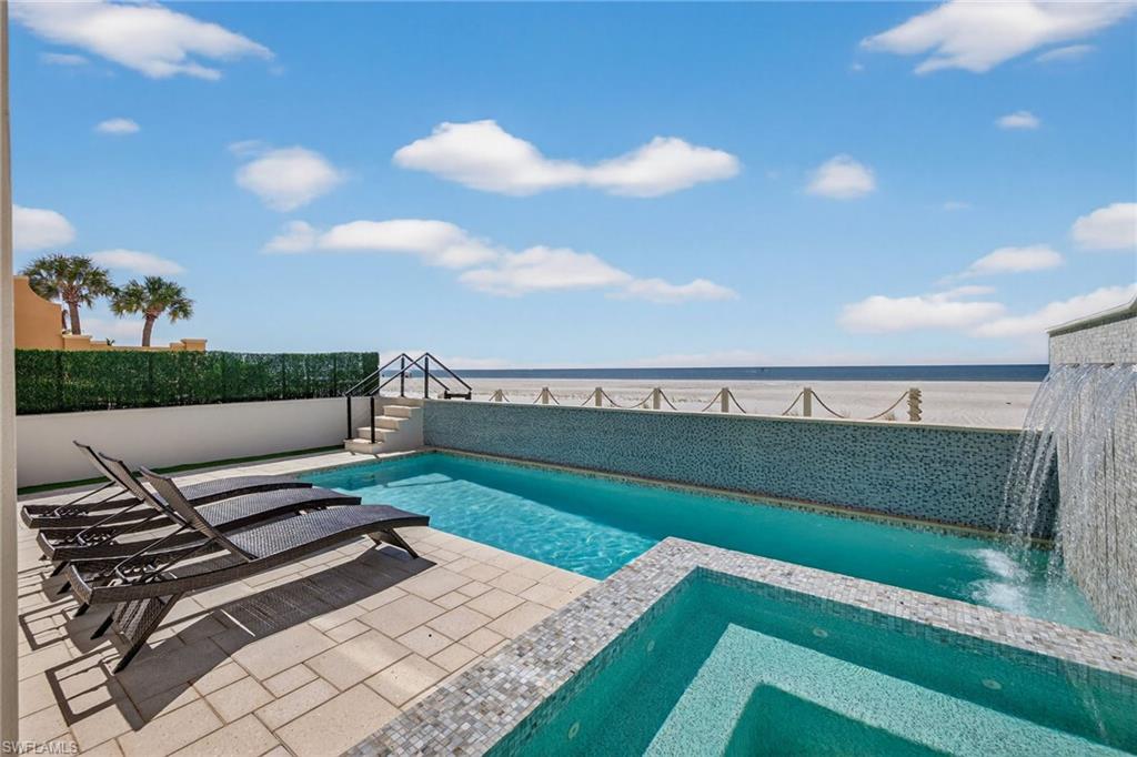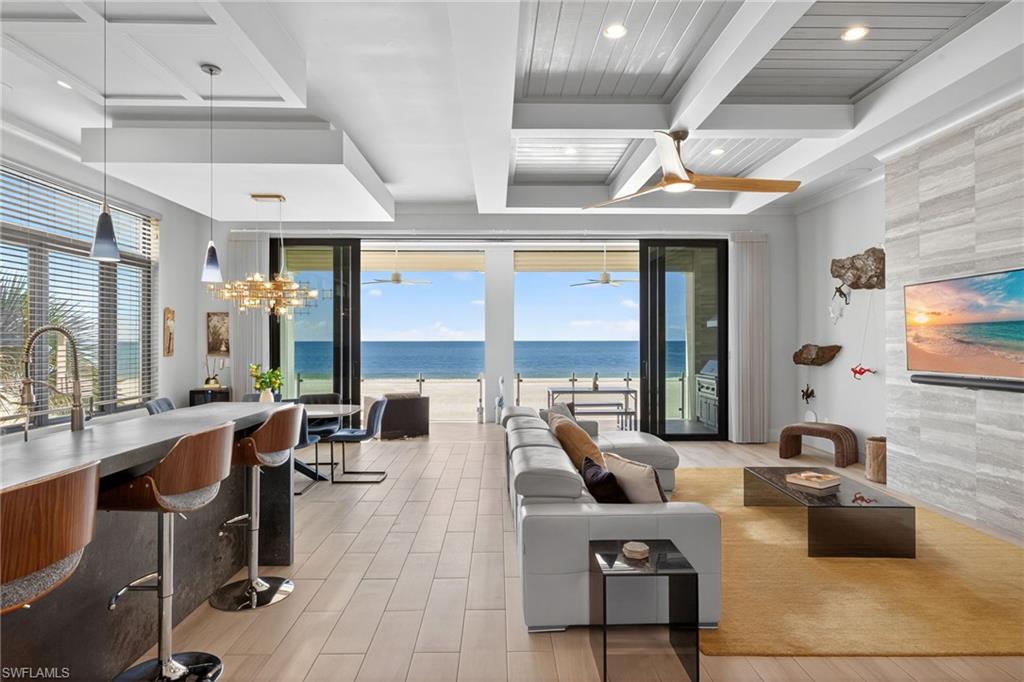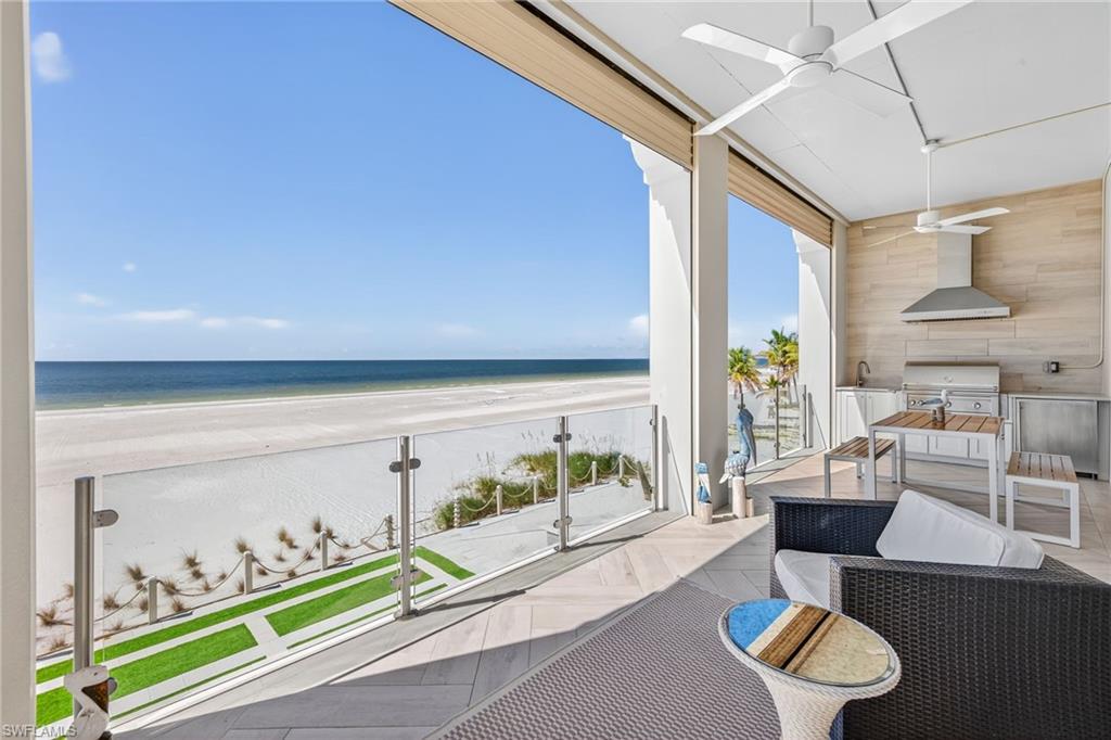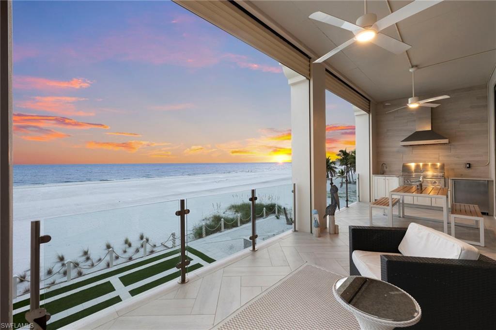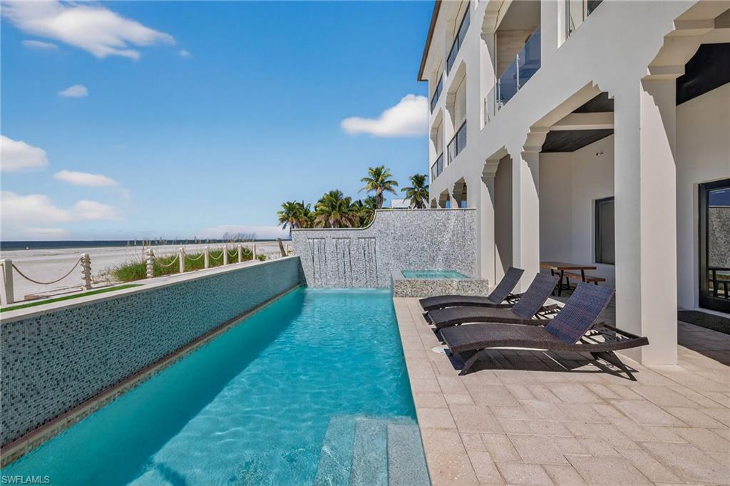 Situated on the most sought-after stretchers of Ft Myers Beach, this Gulf-front residence delivers luxury beachfront living with a strong investment appeal. Away from the busyness of Times Square yet close to dining, Publix, and island amenities, the location offers both privacy and convenience. This home boasts a strong rental history and substantial year to date bookings make this a seamless turn-key investment. Inside, the open-concept floor plan is anchored by a chef's kitchen featuring professional-grade appliances, custom cabinetry, and elegant quartz and granite finishes. Bright, airy living spaces flow seamlessly together, highlighted by driftwood-style tile flooring throughout, designer lighting, and soaring ceilings. Built to endure, the home offers concrete block construction, hurricane-impact glass, electric storm shutters, and a private elevator for convenience and peace of mind. The outdoor living space is equally impressive, with a resort-style pool and spa, cascading waterfall, a full outdoor kitchen, and glass railings that maximize panoramic Gulf views and watercolor sunsets. The home sits along the newly restored shoreline, thanks to the Estero Island Beach Renourishment Project, which enhances both beauty and long-term resilience. Whether as a luxurious private retreat or a premier rental investment, 3534 Estero Blvd stands as one of the finest opportunities on Fort Myers Beach. Schedule your private sunset showing today!